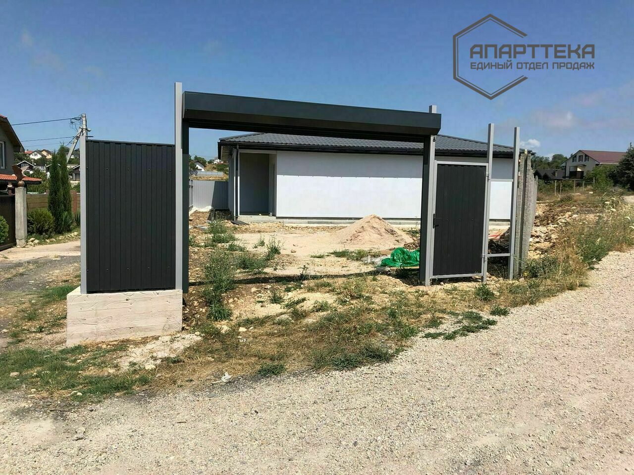 Установлены автоматические роллетные ворота, калитка. Территория участка будет облагорожена, площадка для автомобиля и дорожка к дому вымощены тротуарной плиткой.