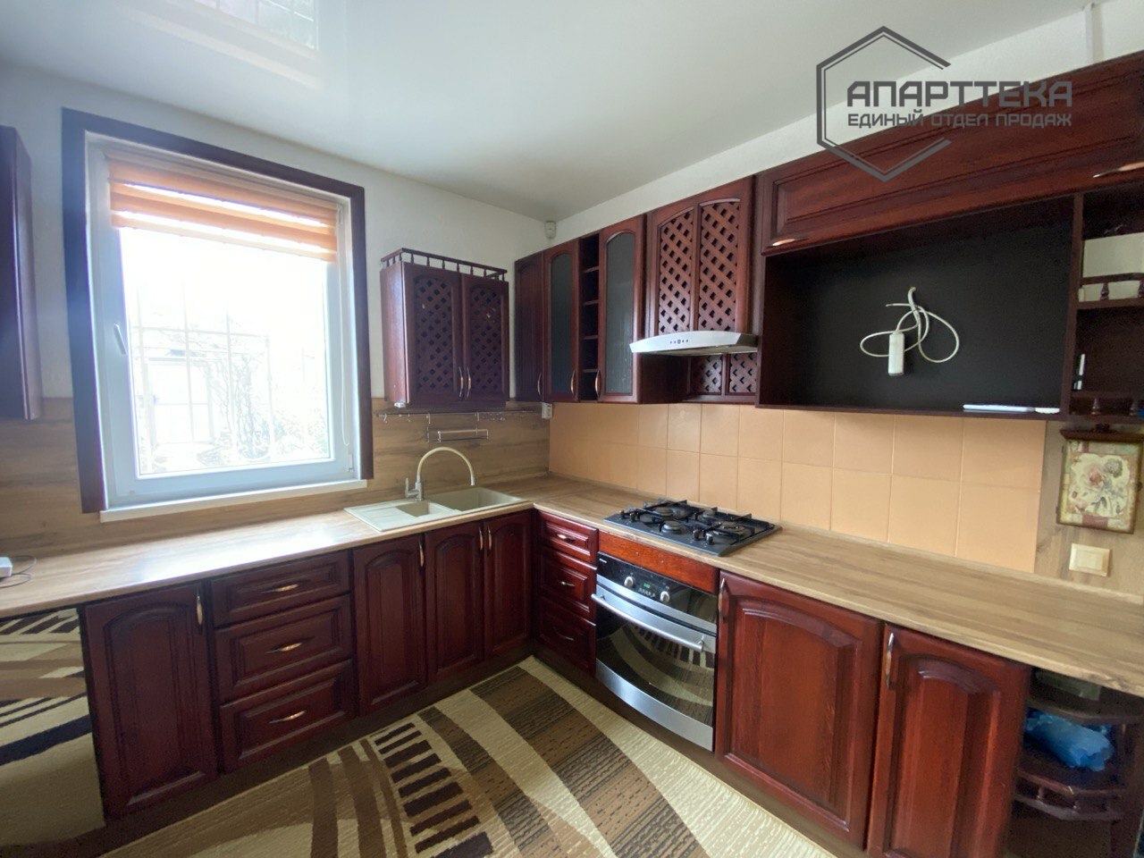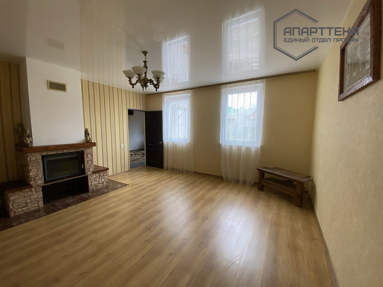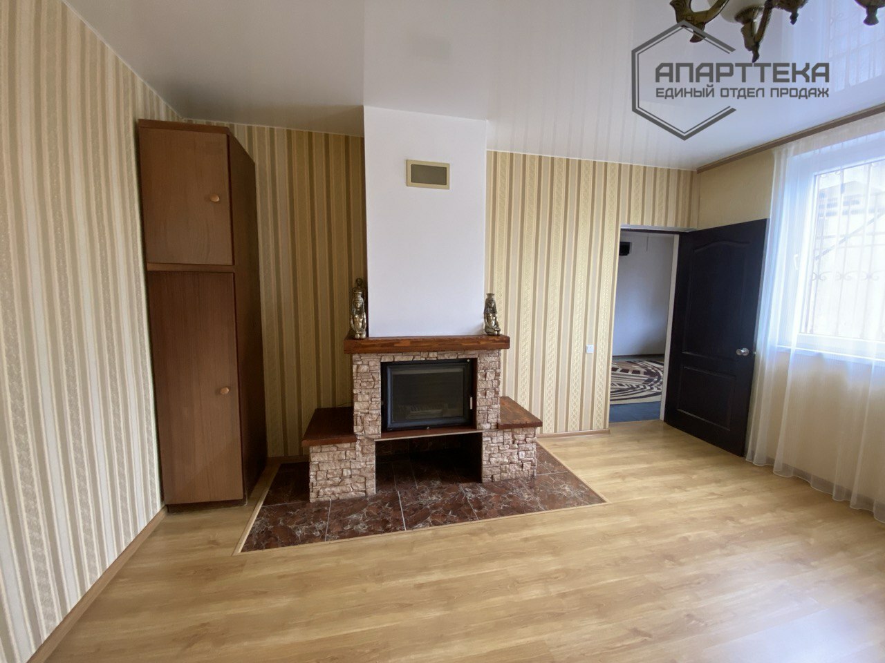 Планировка: входная группа оборудована вместительным шкафом; просторная кухня, укомплектованная современным гарнитуром,газовая варочная поверхность, работает от газового баллона, духовой шкаф; три спальни, раздельный санузел со всем необходимым оборудованием. Изюминкой дома является гостинная комната с действующим камином. Камин дарит не только эстетическое наслаждение открытым огнем, но и является дополнительным источником тепла, посредством сложной инженерной системы дымоходов.