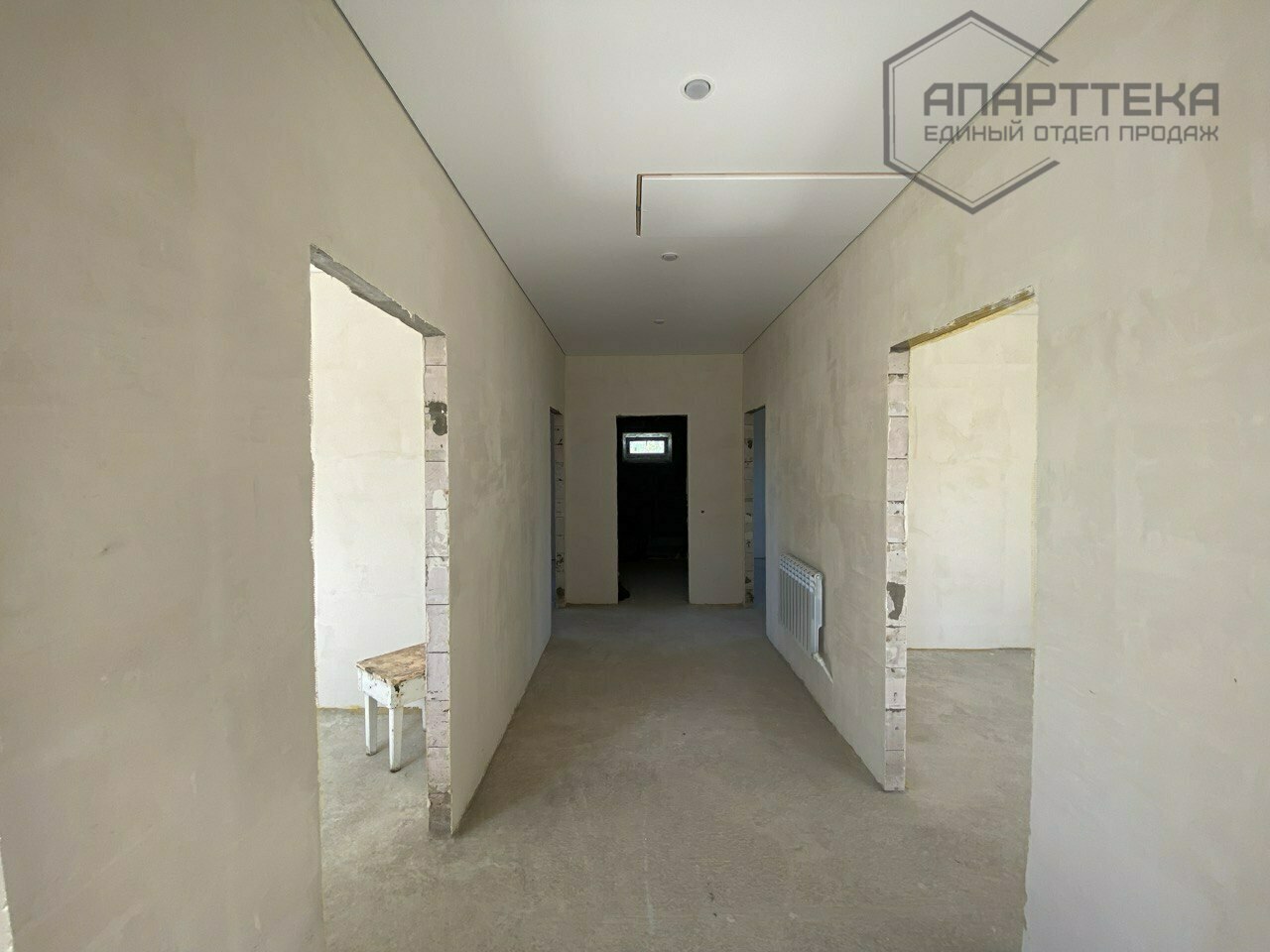 В одноэтажном доме прекрасно расположились: небольшая кухня-гостиная и еще три просторные светлые спальни, совмещенный санузел. В доме выполняется пред чистовая отделка стен под поклейку обоев, разведено электричество, отопление, водоснабжение, водоотведение. Потолки декорированы натяжным полотном, установлены осветительные приборы, высота помещений 2,85 метра.