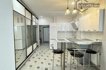 Характеристика квартиры: студия с качественным дизайнерским ремонтом (состояние - как новая, почти не проживали), при ремонте сделана дополнительная шумоизоляция от соседей, выполнено зонирование для кухни/гостинной/спальни, сан узел совмещенный (электрический теплый пол), отопление - в доме крышная котельная (на отопительный сезон). Все фотографии соответствуют.